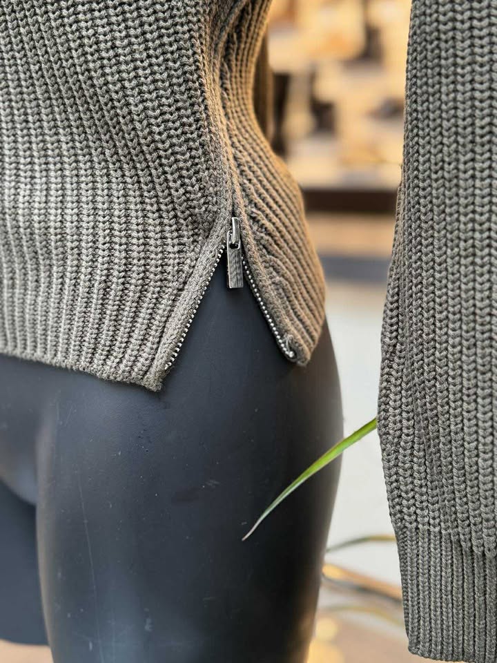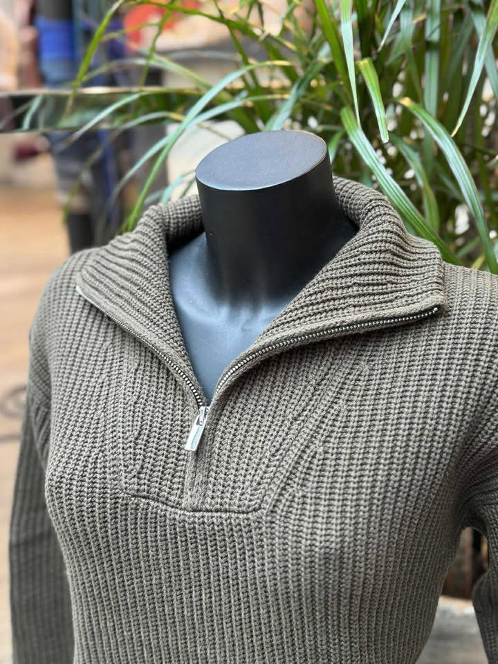 Gebreide katoenen pull met openritsbare kraag